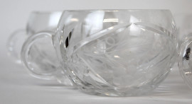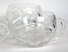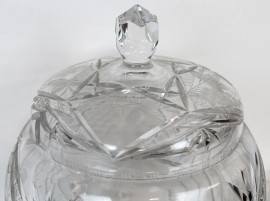 Servizio da punch in cristallo controtagliato, composto da un recipiente con coperchio e dieci bicchierini, alt. max cm 31, metà XX secolo, (lievi difetti e mancanze).