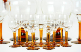 Composto da una bottiglia, una caraffa, sei calici da acqua, sei calici da vino, cinque bicchierini da liquore e e sei bicchierini da acqua;