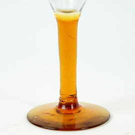 Servizio di bicchieri in vetro trasparente, fusti in vetro fumé, alt. max cm 37, metà XX secolo, (servizio incompleto, difetti).