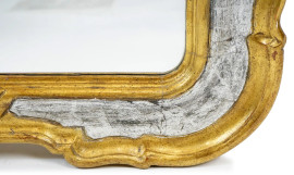 Specchiera a cabaret, in legno dorato ed argentato, XX secolo, misure ingombro cm 83x66,5, misure luce cm 59,5x43,5, (difetti).