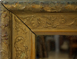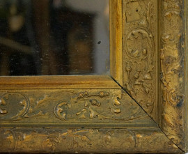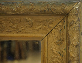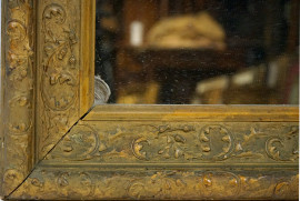 Specchiera di linea rettangolare in legno intagliato e dorato, misure ingombro cm 79x64, misure luce cm 60x45, inizi XX secolo, (difetti).
