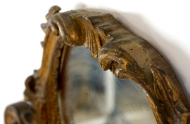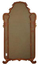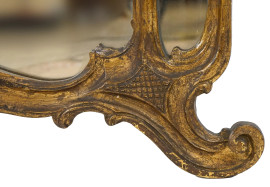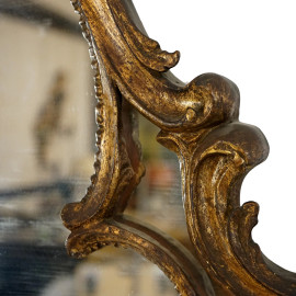 Specchiera di linea sagomata, XX secolo, in legno intagliato e dorato, cm h 149x82, (difetti).
