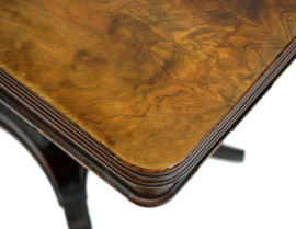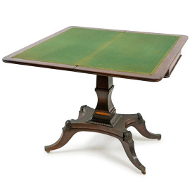 Tavolo da gioco a libretto, XIX secolo, montante poggiante su quattro gambe mosse, cm h 79x96,5x96,5, (difetti).