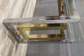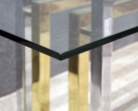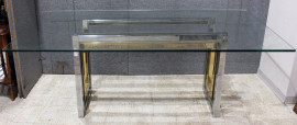 Tavolo di linea rettangolare, XX secolo, piano in cristallo poggiante su struttura in acciaio, cm h 73,5x102,5x99,5, (piccola sbeccatura al piano).