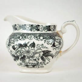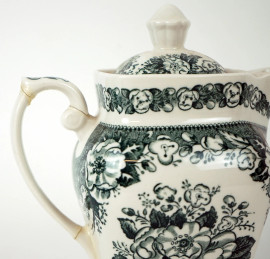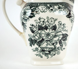 Teiera e lattiera in porcellana Villeroy&Boch, decoro verde a motivo di fiori, alt. max cm 15,5, XX secolo, (difetti e restauri)