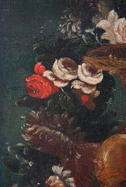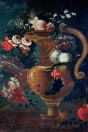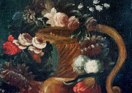 Vaso con fiori, olio su tela, cm 34x24,5, XIX secolo, entro cornice, (lievi difetti).