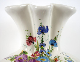 Vaso in porcellana, decoro floreale dipinto in policromia, cm h 27, XX secolo, (segni del tempo).