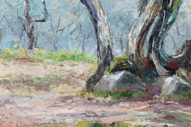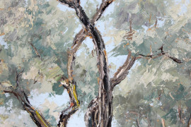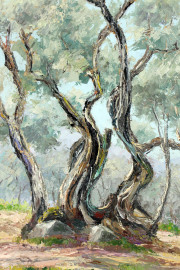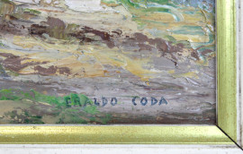 Vecchio ulivo, olio su tavola, cm 30x30, firmato Eraldo Coda, entro cornice.