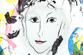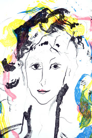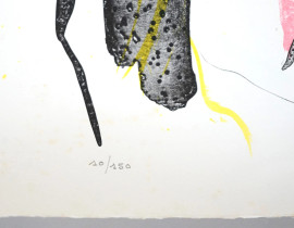Volto, litografia a colori, cm 70,5x50, ES. 10/150, firmata Ernesto Treccani, (piccoli difetti sulla carta).