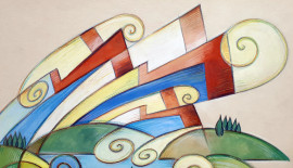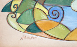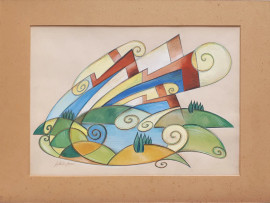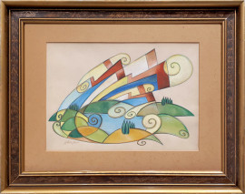 Aeropittura, tecnica mista su carta del maestro Achille Boni (XX sec.), cm 24x33, firmato in basso a sinistra, entro cornice