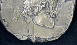 Profilo d'uomo, bassorilievo in bronzo, multiplo, cm 14,5x15,5, entro cornice.