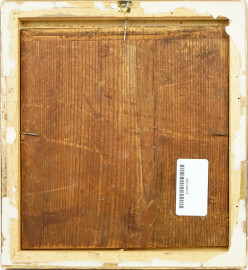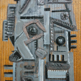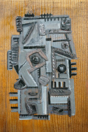Artista del XX secolo, Senza titolo, composizione polimaterica su tavola, cm 22x21, entro cornice.