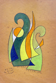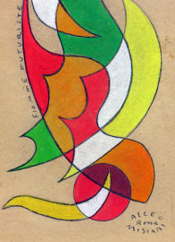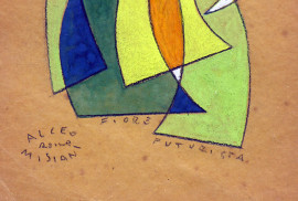 Artista futurista del Novecento, Fiori futuristi, coppia di dipinti a tempera su carta, ciascuno cm, firmati e titolati