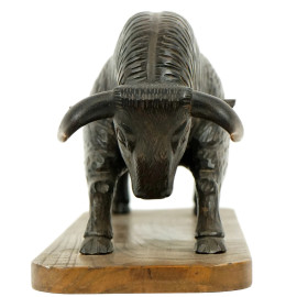 Bisonte, scultura in legno scolpito, XX secolo, cm h 13x28x10