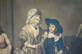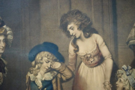 Black Monday or the Departure for School, stampa a colori da William Redmore Bigg (1755-1828), cm 42x54, inizi XX secolo, entro cornice
