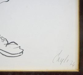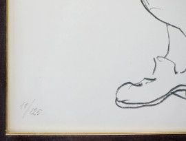 Pulcinella innamorato, serigrafia, cm 68,5x48, es. 18/125, firmata Cagli '74, entro cornice