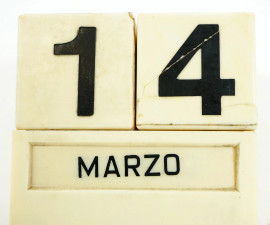 Calendario da tavolo anni '40, Ferrovie dello Stato, in plexiglass, cm 8x15,5xx10, (difetti e restauri).
