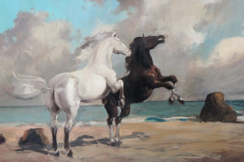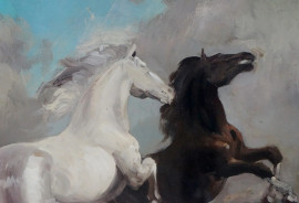 Cavalli, olio su tela, cm 50x70, firmato, entro cornice.