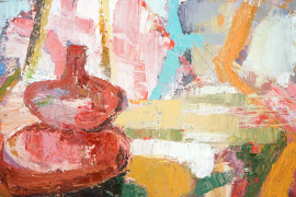 Composizione-vasellame, olio su tela, cm 45x58,5, (difetti).