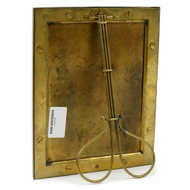Cornice portafoto in metallo dorato, cm 29,5x24,5, XX secolo, (segni del tempo).