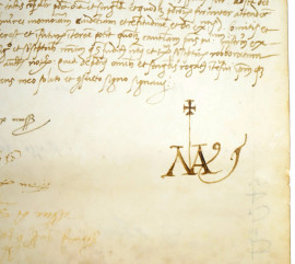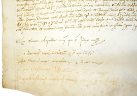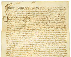 Documento manoscritto su pergamena del XVI secolo, cm 57,5x22, (difetti).