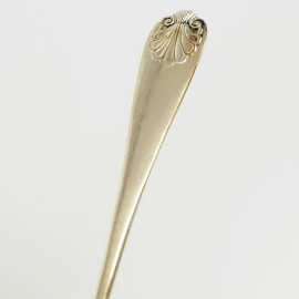 Dodici cucchiaini da caffè ed una pinza in metallo argentato, entro custodia originale.