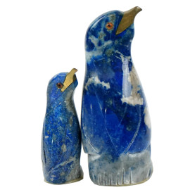 Due piccole sculture con pinguini in vetro e lapislazzulo, cm h 8,5, XX secolo, (lievi difetti).