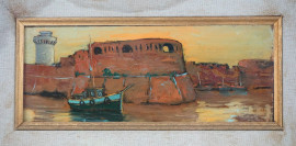 Fortificazioni, olio su masonite, cm 10x25, entro cornice