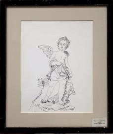 Gemma Hartmann (1940-2012), Il genio della caccia, china su carta, cm 30x24, firmato, entro cornice.