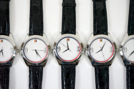 Genoa Cricket and Football Club, nove orologi da polso da uomo, cinturino nero in cuoio, lunghezza cm 24,5, (segni del tempo, meccanismo da revisionare).