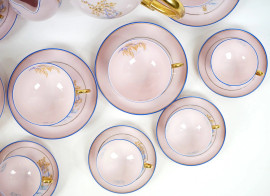 Giò Ponti per Johann Haviland Bavaria, servizio da caffè in porcellana rosata con decori di paesaggi e finiture dorate (pz.36)