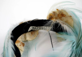 Lotto composto da un cerchietto e due cappelli anni '50 con applicazioni di piume colorate, misure max cm 26x16, (difetti).