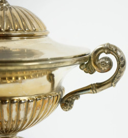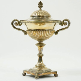 Lotto composto da una zuccheriera ed una coppa con coperchio in Sheffield, misure max cm 30,5, XX secolo, (segni del tempo).