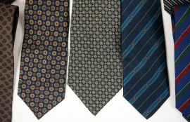 Lotto di dieci cravatte da uomo a varie fantasie e firme, (segni di utilizzo).