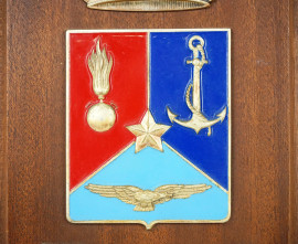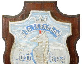 Lotto di due crest in metallo smaltato, pannelli in legno, misure max cm 26,5x21, (difetti).