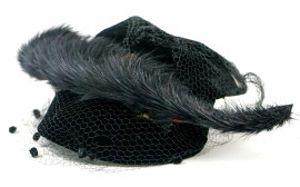 Lotto di tre cappelli anni '50 in velluto nero e giallo con veletta, misure max cm 26x19, (difetti).