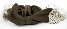 Lotto di tre cappelli colorati in materiali diversi, misure max cm 24x17, (difetti).