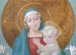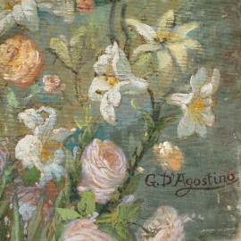 Madonna con Bambino, olio su tela, cm 115,5x70, firmato G.D'Agostino, (lievi difetti).