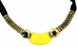 Marni, cintura da donna vintage, in plexiglass, metallo dorato e raso nero, lunghezza cm 188, entro scatola originale
