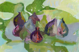 Fichi fra gli ulivi, olio su tela, cm 50x60,5, entro cornice.