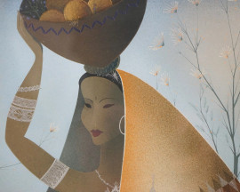 Lotto di due tecniche miste raffiguranti donne indiane, cm 21x27,5, entro cornici