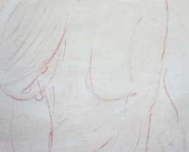 Nudo di donna, matita rossa su carta, cm 27x21, firmato, entro cornice, (difetto sulla carta).