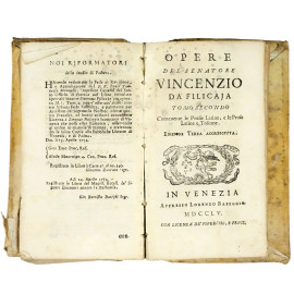 Opere Del Senatore Vincenzio Da Filicaja, tomo primo, appresso Lorenzo Baseggio, Venezia, 1755, (difetti)