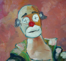 Pagliaccio, olio su masonite, cm 70x50, firmato, entro cornice.
