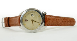 Palermo, dieci orologi da polso da uomo, cinturino marrone in cuoio, lunghezza cm 24,5, (segni del tempo, meccanismo da revisionare).