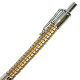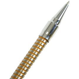 Penna a sfera grigia con corpo a spirale, lunghezza cm 14, entro custodia originale.