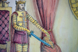 Piatto in ceramica dipinta raffigurante l'Investitura, XX secolo, diam. cm 44