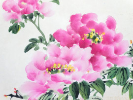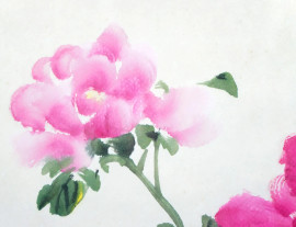 Pittore cinese del XX secolo, Fiori, acquarello su carta, cm 45x35, entro cornice