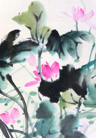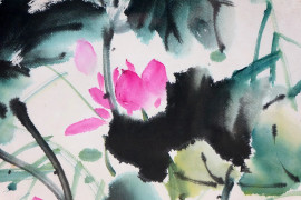 Pittore cinese del XX secolo, Fiori, acquarello su carta, cm 45x37, entro cornice