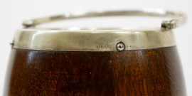 Portaghiaccio in legno e metallo argentato, cm h 15, XX secolo, (difetti).